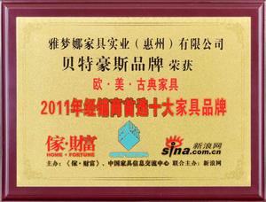 雅梦娜家具荣获十大欧美家具品牌奖与十大整体家具品牌奖